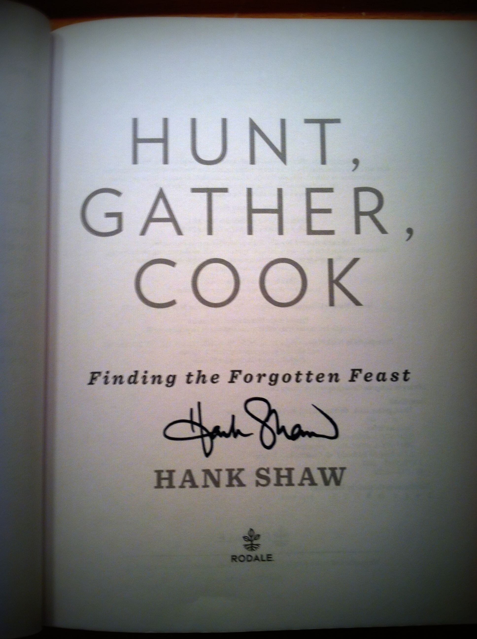 Hank Shaw is the creator of the Hunter, Angler, Gardener, Cook blog which won the James Beard Award for the best food blog in 2013. He recently spoke at the Pheasant Fest 2014 in Milwaukee, WI, and I had a chance to hear him talk. Down-to-earth, genuine, and funny, he shared a number of tips on preparing pheasants, quail, and a whole host of other birds.  He rattled off types of ducks and their flavor profiles like he was listing off a McDonald’s menu.  This guy knows his stuff.  I got this, so I was pretty happy: