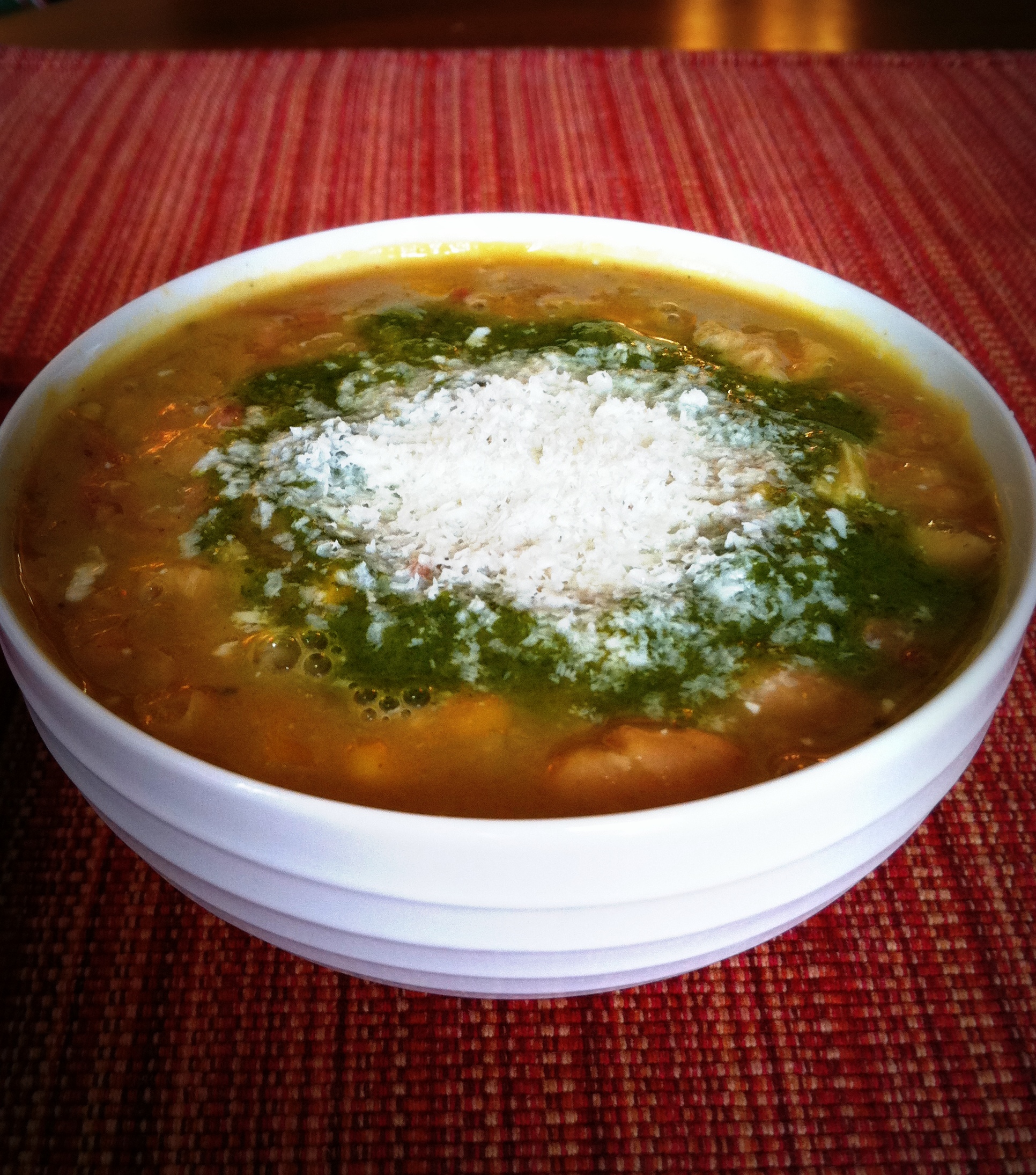 So in this version we went with the cilantro which adds a nice brightness. We’re assuming Sean Sherman in his white bean soup listed above is using the native wood sorrel (oxalis) rather than the French imported variety. Either would be a nice addition, but the wood sorrel would keep the recipe truer to our purposes here. The feta here is served grated with a Microplane grater after being frozen. We have used this approach before with blue cheese over a beet salad and similar applications. The cheese loses none of the flavor appeal as it warms in the soup, but the fine grate creates a more even dispersion. Not necessary, but a fun little wrinkle. Clearly the cheese is not an indigenous item, so leave it out if desired, though it adds a nice saltiness and creaminess to to the finished soup. In the end, this is more of a melting pot dish than a culturally accurate one.