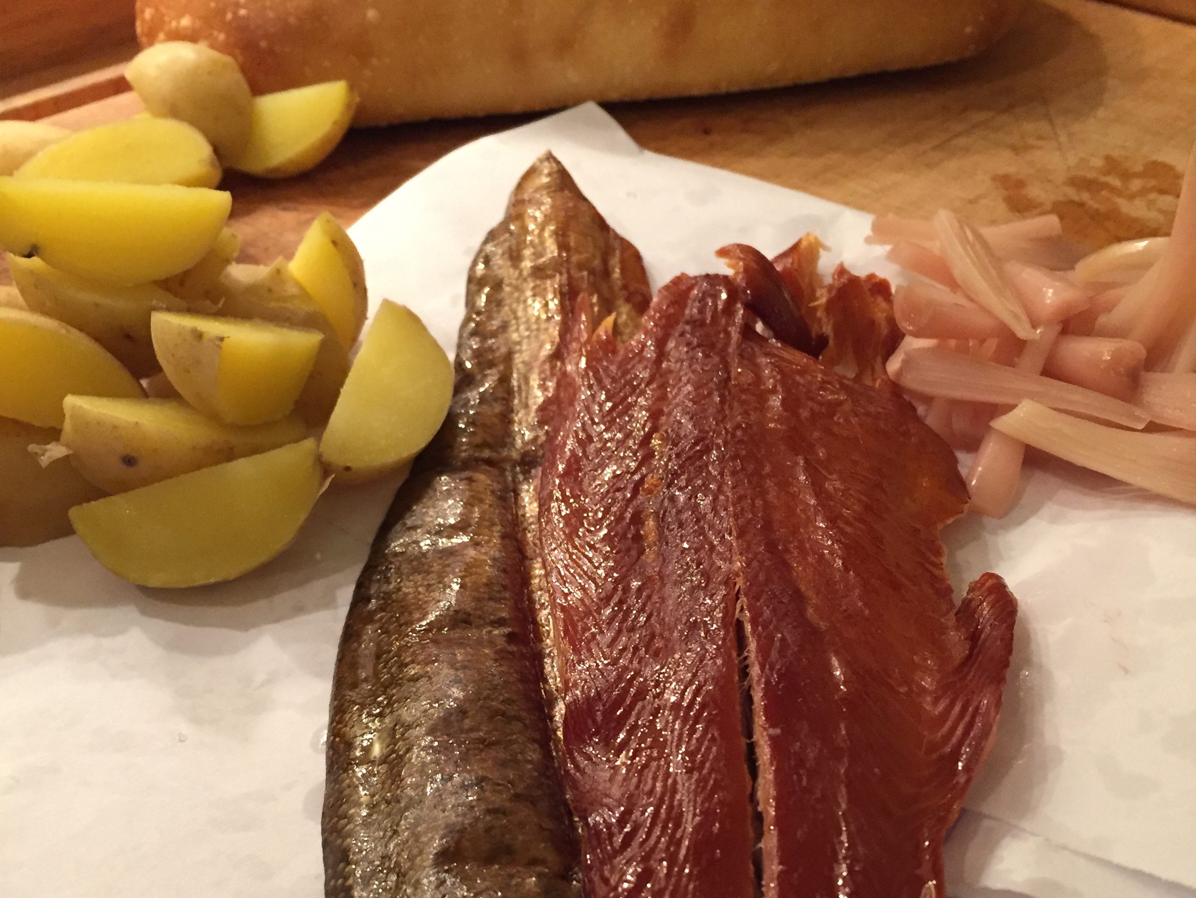 Today, there are a number of commercial interests farm raising trout, leveraging of the abundant natural resources of the area. We have featured a number of different trout preparations before, though here we are using the smoked trout in a number of different recipes.
