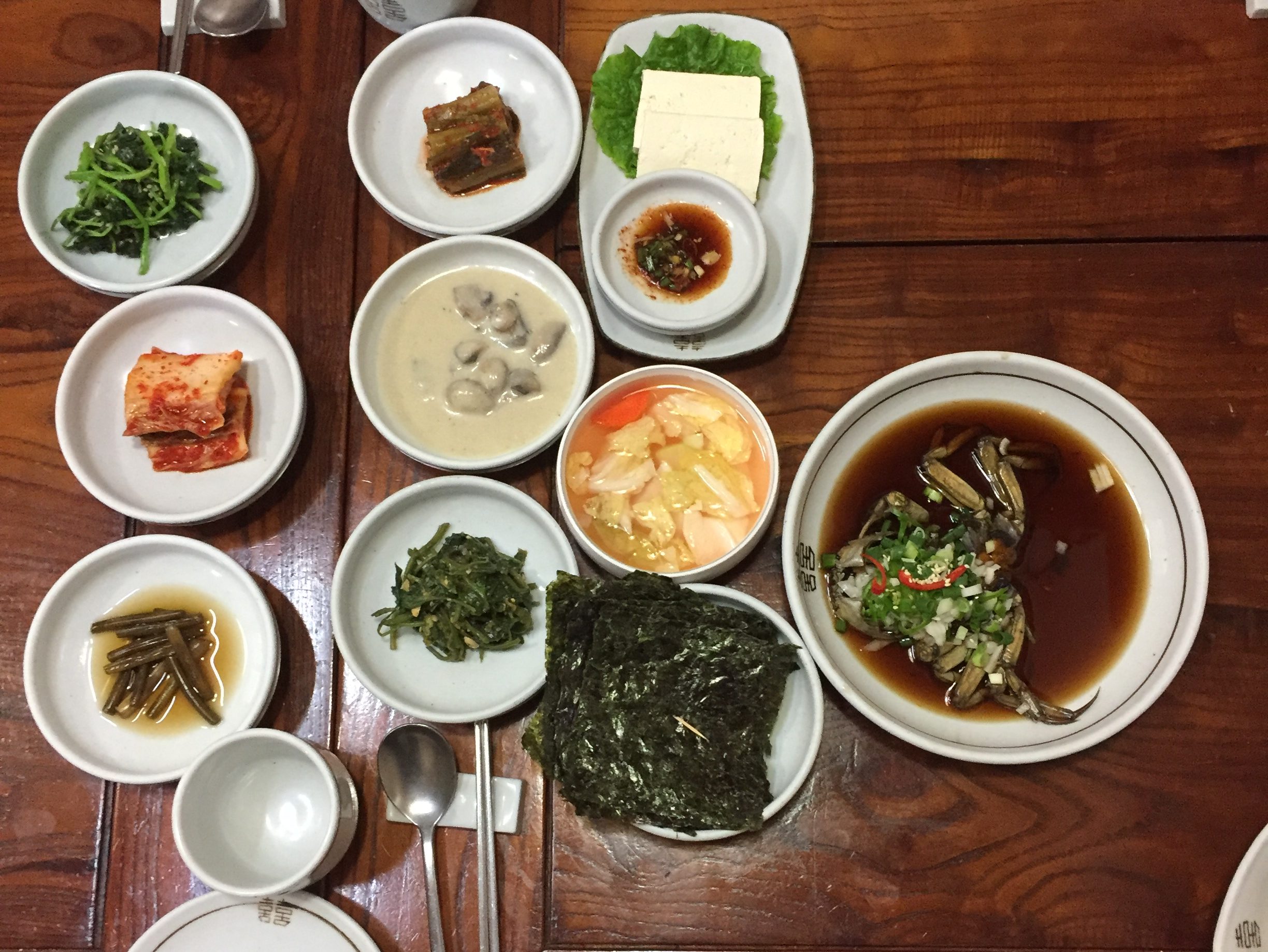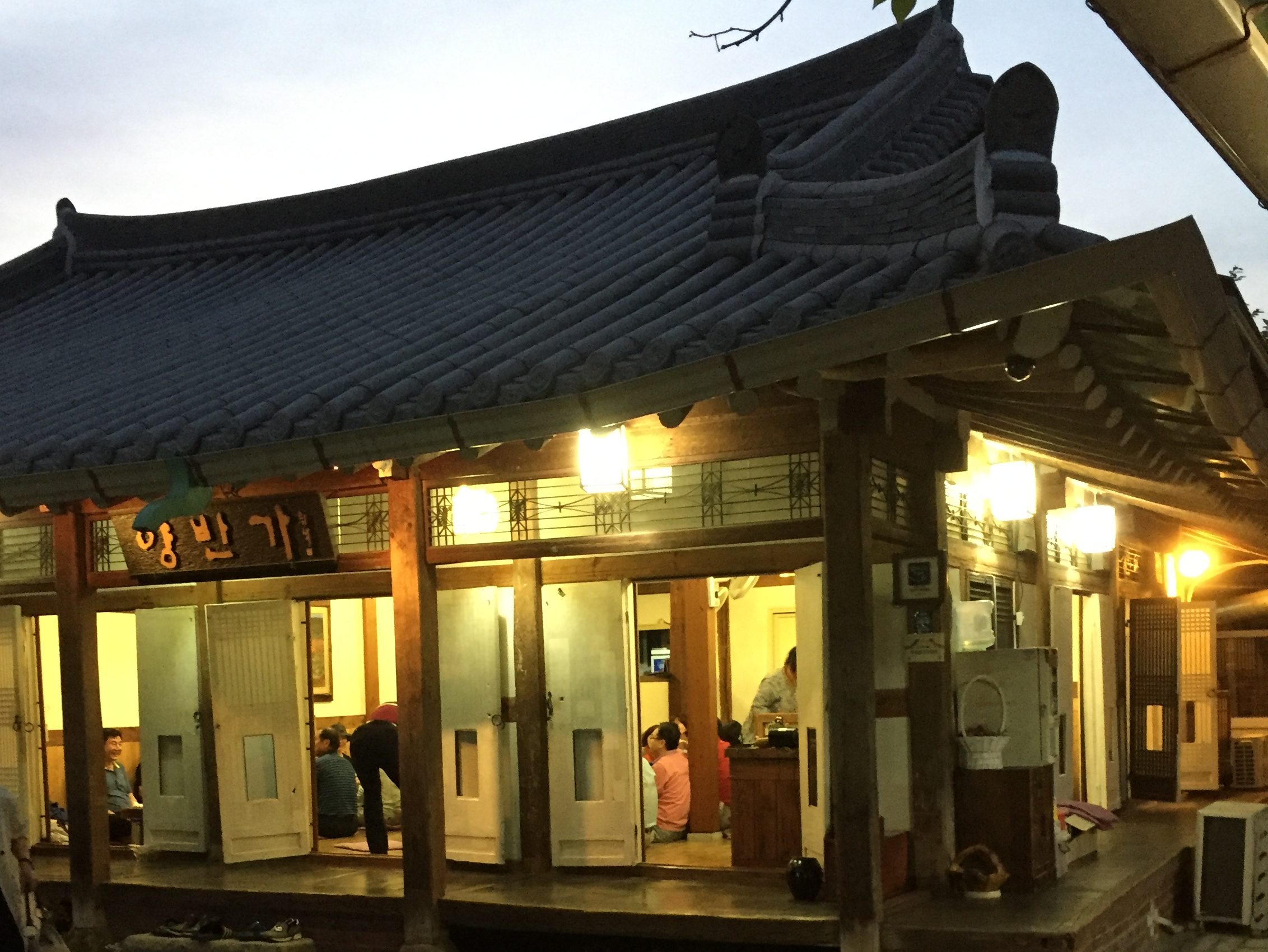 Upon arrival we had to take a bus, driving past the endless quilt of twilight-colored rice fields of the Honam Plain. Our initial destination was Jeonju, named a Creative City for Gastronomy by UNESCO, and the recognized birthplace of bibimbap. Our late arrival limited options, but a restaurant across from our hotel agreed to stay open for us.
