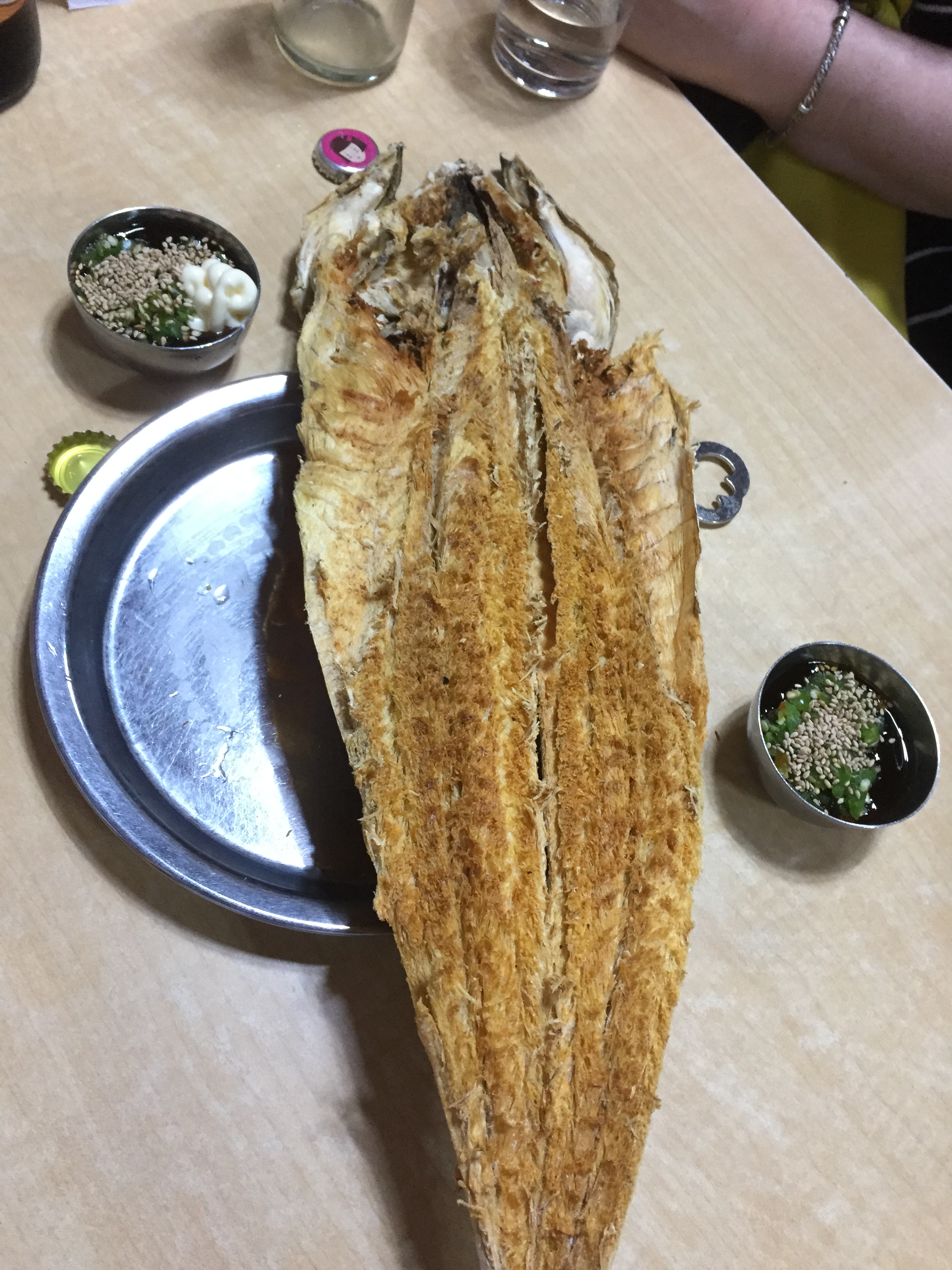 And then more dishes – vegetables dipped and fried similar to tempura, bulgogi, whole filets of fish, more cabbage dishes. And they quickly and carefully balanced them on one another, a sensory overload of flavors. And then there was this: