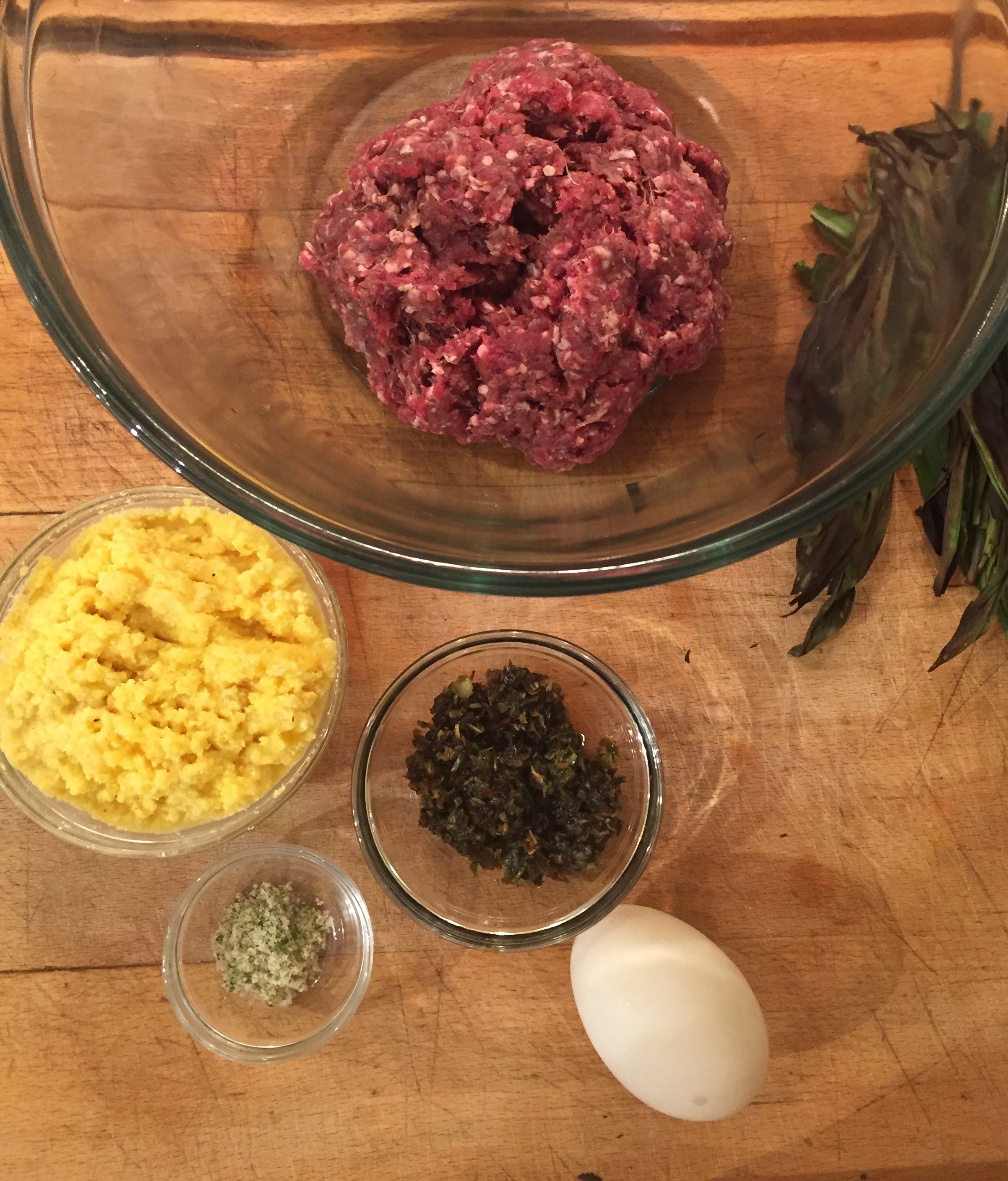 Preheat oven to 400ºF and remove elk meatballs from refrigerator. When oven is ready, bake elk meatballs for 15-20 minutes or until cooked through. Reheat corn porridge on low, stirring occasionally.