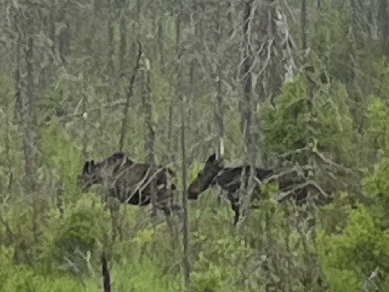 First one, then a second. Once roaming the Upper Peninsula in great numbers, moose were all but wiped out in the 19th and 20th century. In 1980, the Michigan DNR made an effort to re-establish a population by moving 59 animals from Ontario. They have grown to over 400 animals in the Marquette area, but they are still a somewhat rare sight.