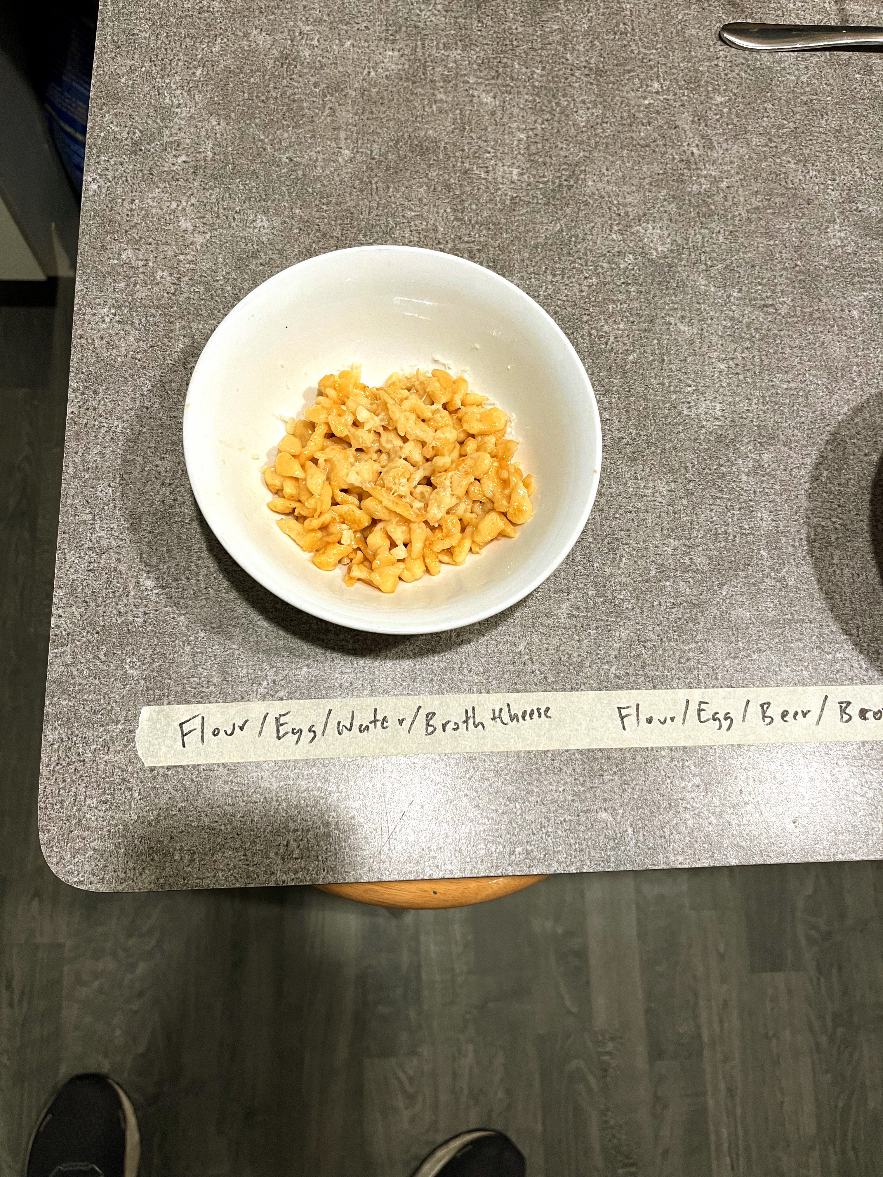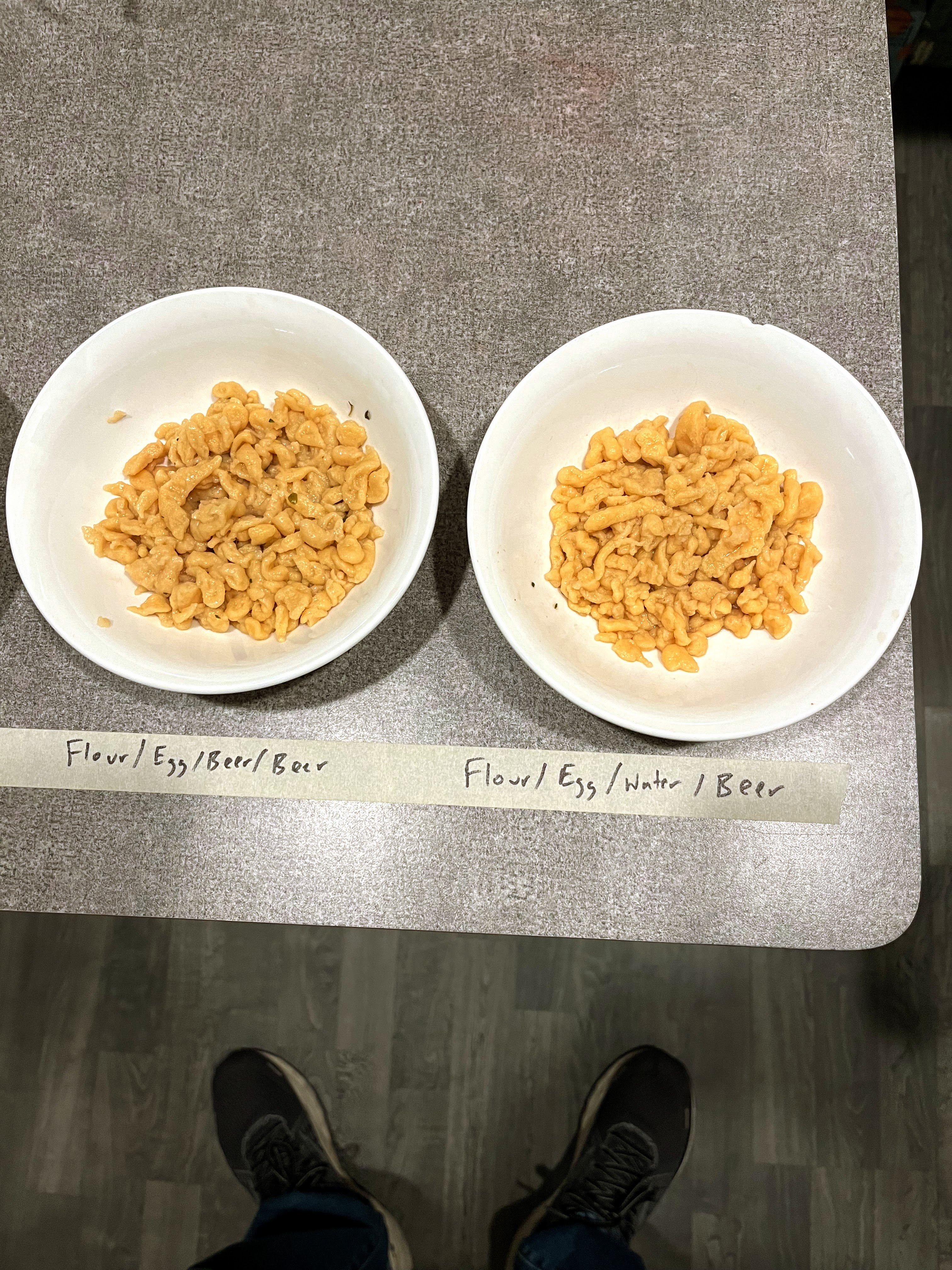 Some of us preferred the full experience of the beer spaetzle finished in beer broth, others preferred the more subtle flavors of the beer spaetzle in veggie broth. All preferred the beer spaetzle over standard. But we weren’t finished yet. Now if you have ever read one of my endless explorations of flavors, you probably already expected that. We have to finish them. Our initial tasting was simply direct from the broth and allowed to cool slightly.