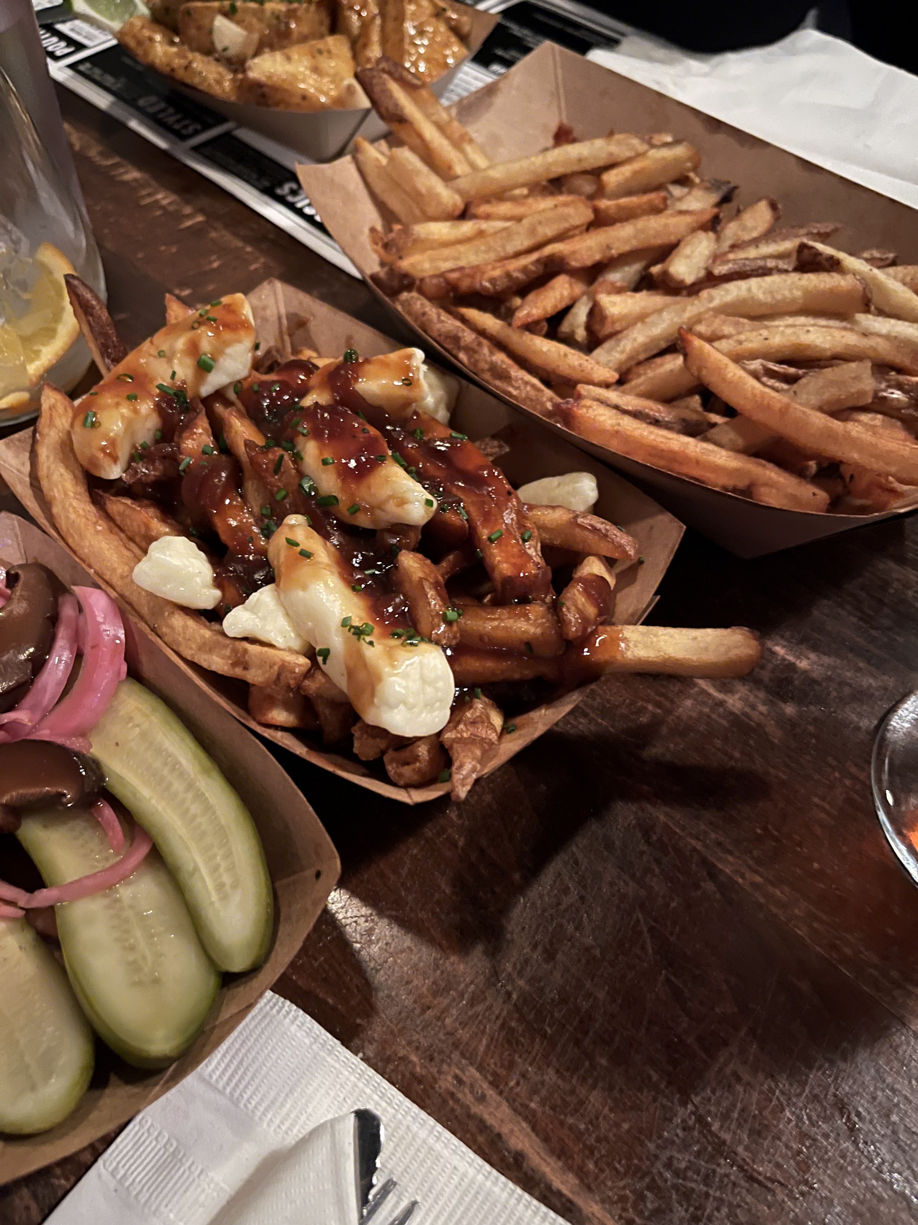 Then to take it all a step further, they had a killer poutine with a caramelized onion gravy and “baby” cheddar curds. We also had the house pickles which were crisp, bursting with flavor, and a great contrast to all the rich flavors.