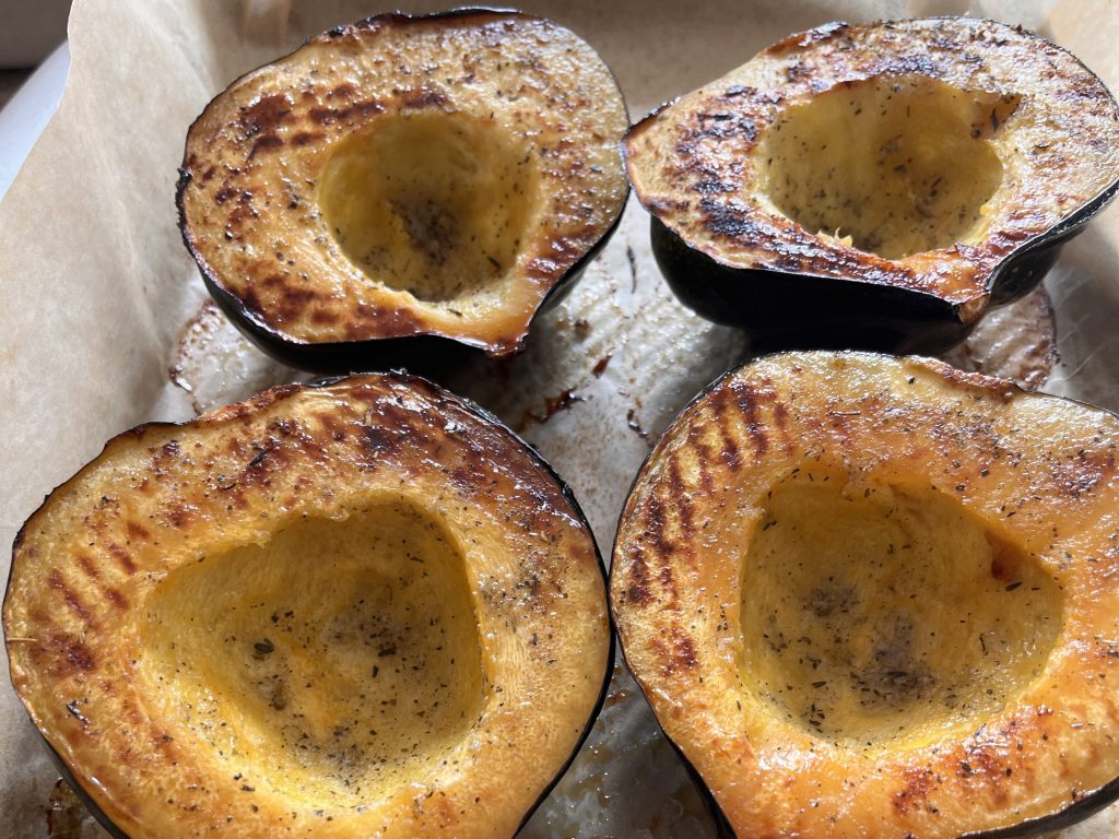 - Two medium acorn squash, halved and de-seeded