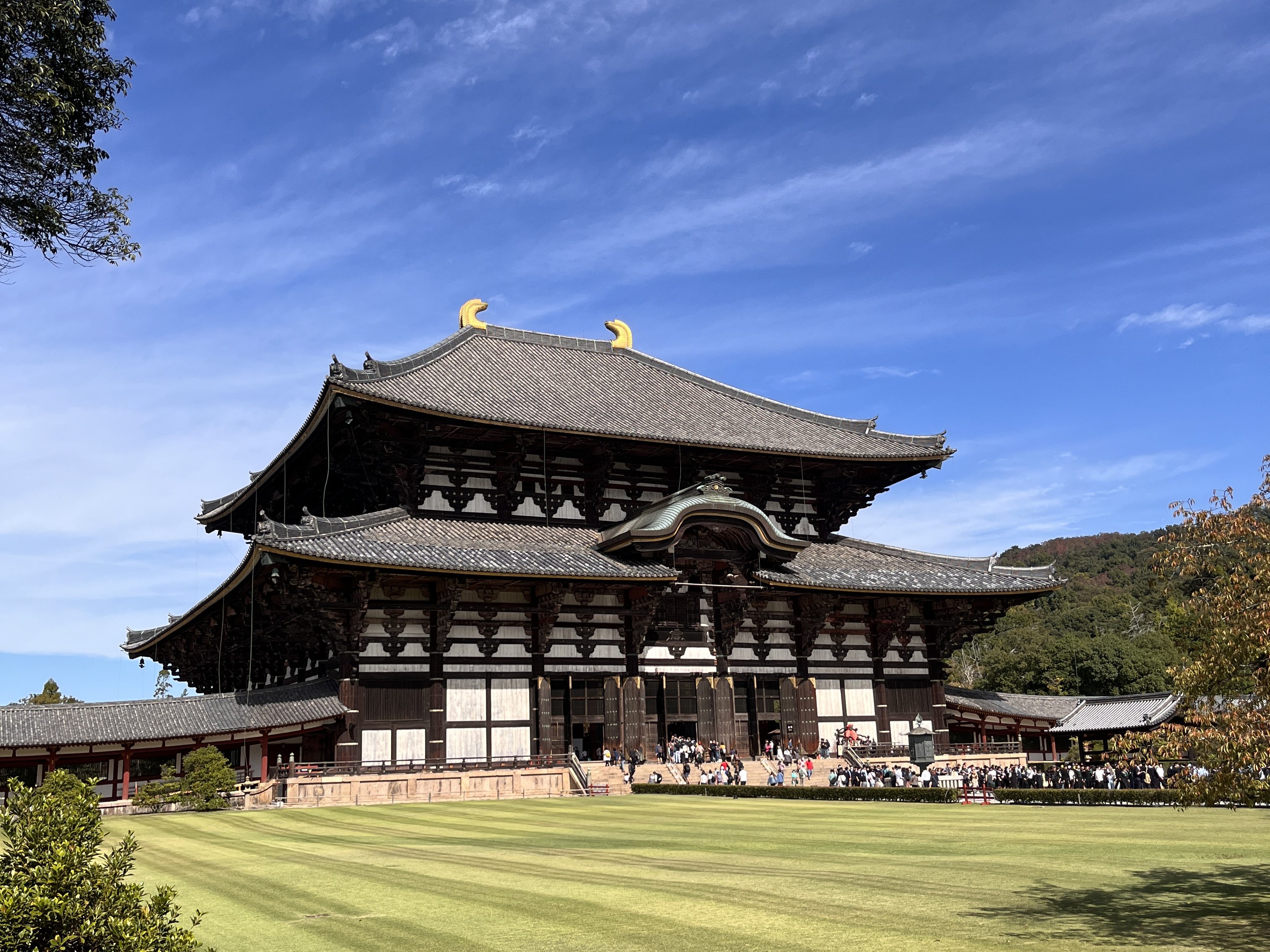 Day seven was another day trip from Kyoto, this time to Nara to see the Todai-ji Temple. One of Japan’s most historically significant temples, it was constructed in 752 as the head Buddhist temple for the country. The main hall until recently was the world’s largest wooden building, despite the reconstruction in 1692 being only two thirds of the original temple hall’s size. The massive building houses one of Japan’s largest bronze statues of a seated Buddha at over 55 feet tall.