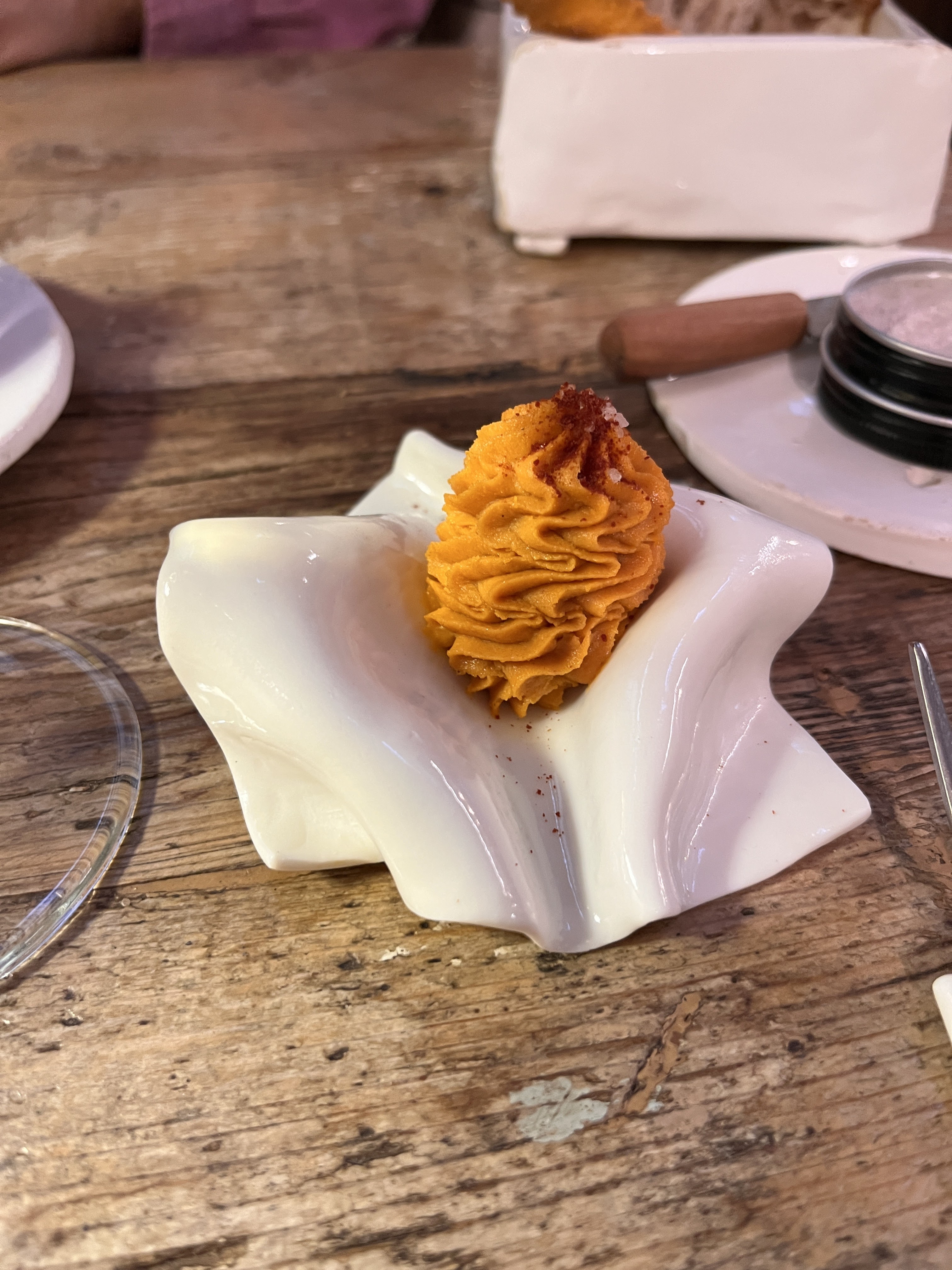 A buttery croissant-like bun followed with a sweet tomato butter. Few things in life are quite as satisfying as a well-prepared butter bread, then add an exquisite tomato infused butter? Heaven.