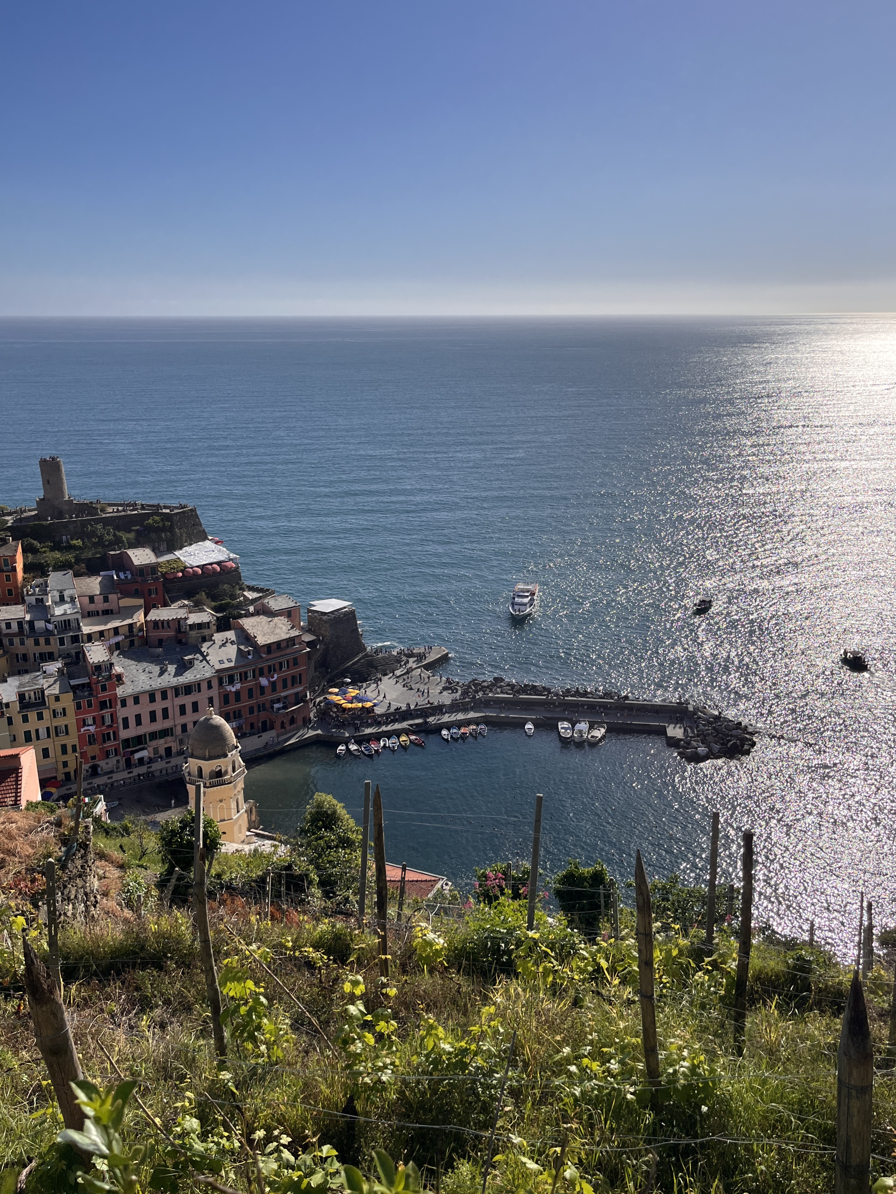 Cinque Terra, literally translated to English as Five Lands, is an area within Liguria, in the northwest of Italy, on the coast of the Mediterranean Sea which covers the towns and lands surrounding Vernazza, Monterosso, Corniglia, Manarola and Riomaggiore. After a train ride in, we walked the narrow cobble stone streets of Vernazza through an arched passage that opens onto the sea.