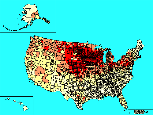 German ancestry is one of the largest self-identified groups in the United States, with the greatest concentration occurring in the Great Lakes region. According to the 2000 U.S. census, the concentration of those that identify themselves as German ancestry can be seen on the map at right.